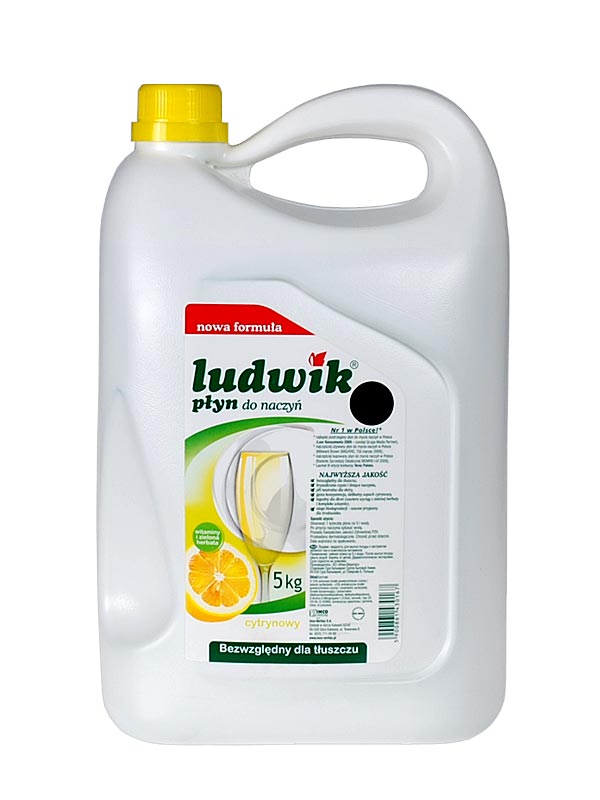 Płyn do mycia naczyń Ludwik posiada bardzo dobre właściwości myjące oraz wysoką zdolność do emulgowania tłuszczów. Przy pomocy Ludwika można myć naczynia zarówno w ciepłej, jak i zimnej wodzie. Płyn nie pozostawia zacieków na umytych powierzchniach, nadaje im połysk bez konieczności wycierania do sucha.