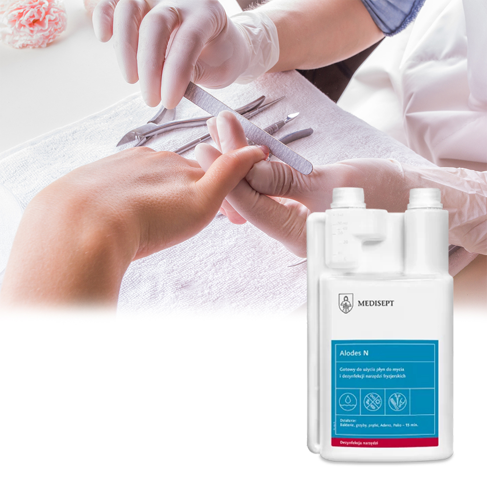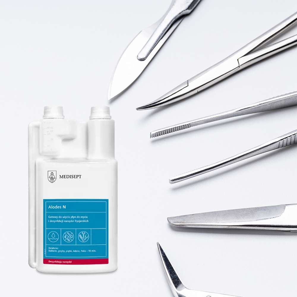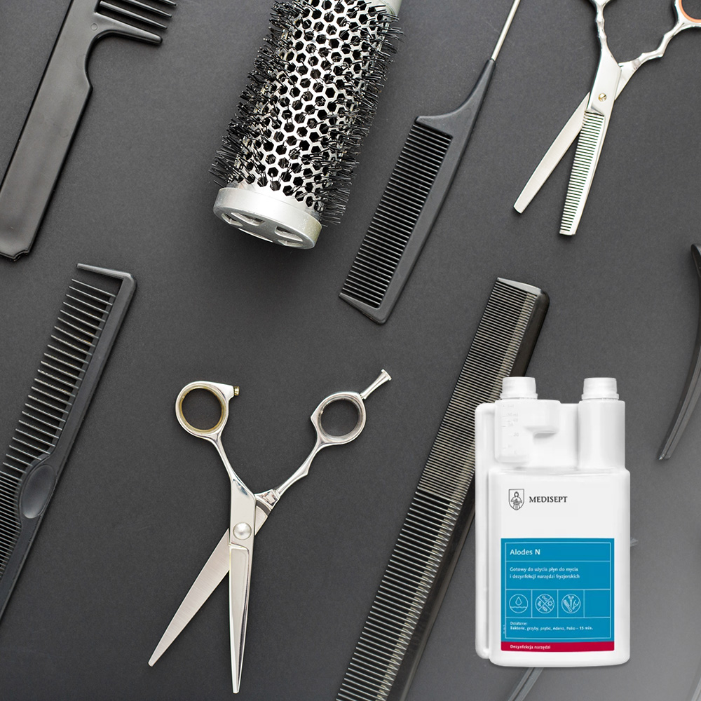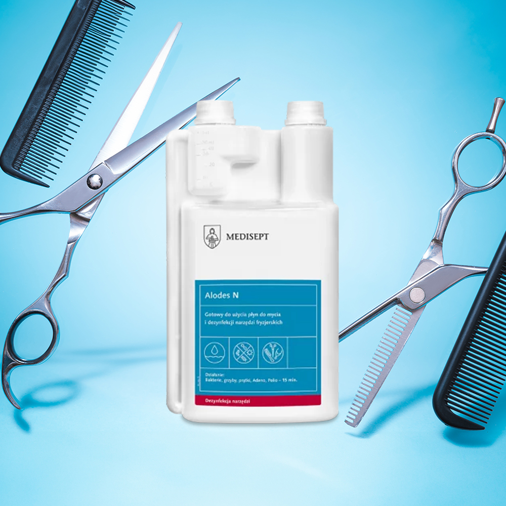 Alodes N – 1L środek do dezynfekcji narzędzi kosmetycznych i fryzjerskich.