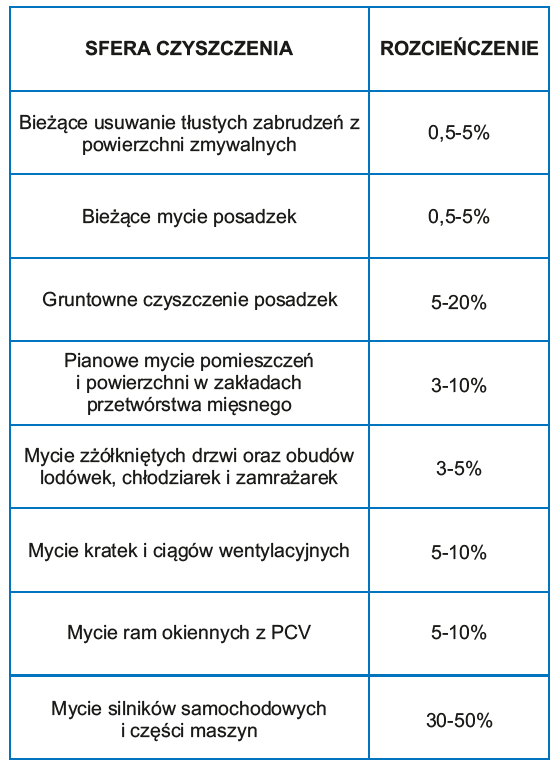 - usuwania z powierzchni zmywalnych tłustych zabrudzeń