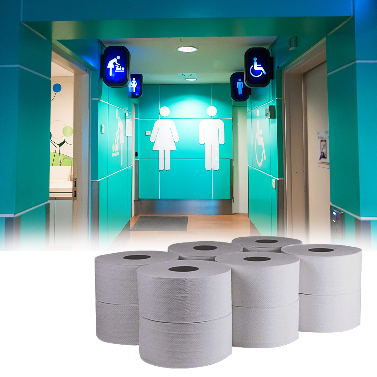 z dozownikami Tork Mini Jumbo, co pozwala na łatwe przechowywanie i