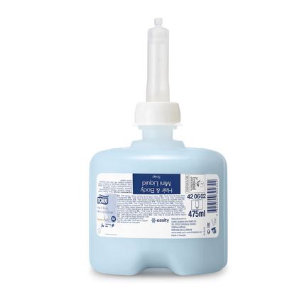 Tork Mini kremowy żel pod prysznic , mydło w płynie do włosów i ciała idealny dla hoteli, szkół i obiektów sportowych – łagodna, nawilżająca formuła kremowego żelu o perłowym kolorze i odświeżającym, uniwersalnym zapachu, która dba o miękkość skóry.
